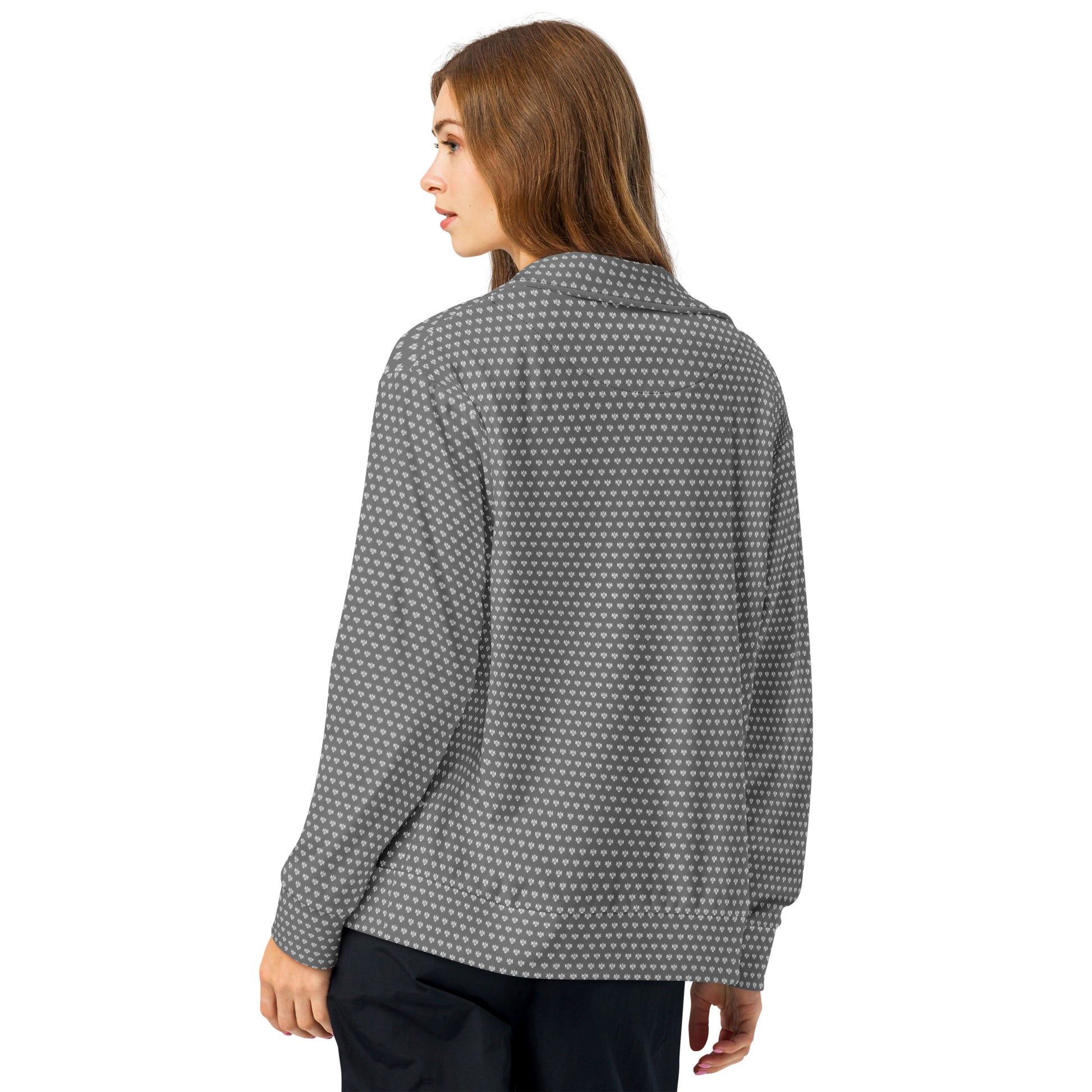 Stay warm and trendy with this zip-up track jacket—perfect for workouts, outdoor activities, and everyday wear. It’s made from recycled materials, has brushed fleece inside for warmth, and zippered pockets.
